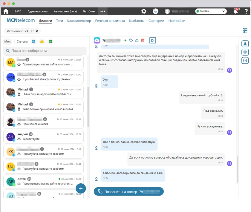 Провайдер телефонии для бизнеса MCN Telecom открыл коммерческий доступ к услуге Контакт-центр ИИ. Он предоставляет единый интерфейс для ведения голосовых и текстовых диалогов в режиме реального времени. ИИ используется для начального общения с клиентами, речевой аналитики, транскрибации и переводы расшифрованных телефонных звонков. ИИ оценивает все звонки по заданной пользователем инструкции. Вы можете создавать для ИИ сценарии текстовых и телефонных диалогов в удобном drag-and-drop интерфейсе. В сервисе есть Адресная Книга, которая представляет собой простую CRM систему. Для корпоративных клиентов доступны два тарифных плана: «Бесплатный» - для 3 операторов, и «Старт» - с возможностью подключения до 1000 операторов (за 599 рублей в месяц за оператора).