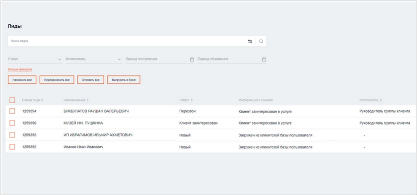 Ростелеком разработал для себя систему обзвона и теперь предлагает её корпоративным клиентам в дополнение к своей облачной АТС. В ней можно управлять лидами и анализировать менеджеров по работе с клиентами. Это несложная CRM для работы с лидами на этапе обзвона. Главное её преимущество - база потенциальных клиентов. Для анализа «Ростелеком» использует предсказательную математическую модель: сервис группирует сайты, которые посещали пользователи, распределяет их по категориям и так определяет интересы потенциальных клиентов. Эти данные (в обезличенном виде) «Ростелеком» предлагает своим клиентам. Чтобы пользователи не получали десятки однотипных звонков с предложениями, «Ростелеком» разработал алгоритм блокировки лидов. Если пользователю уже позвонили из «оконной» компании, конкуренты позвонить ему уже не смогут.