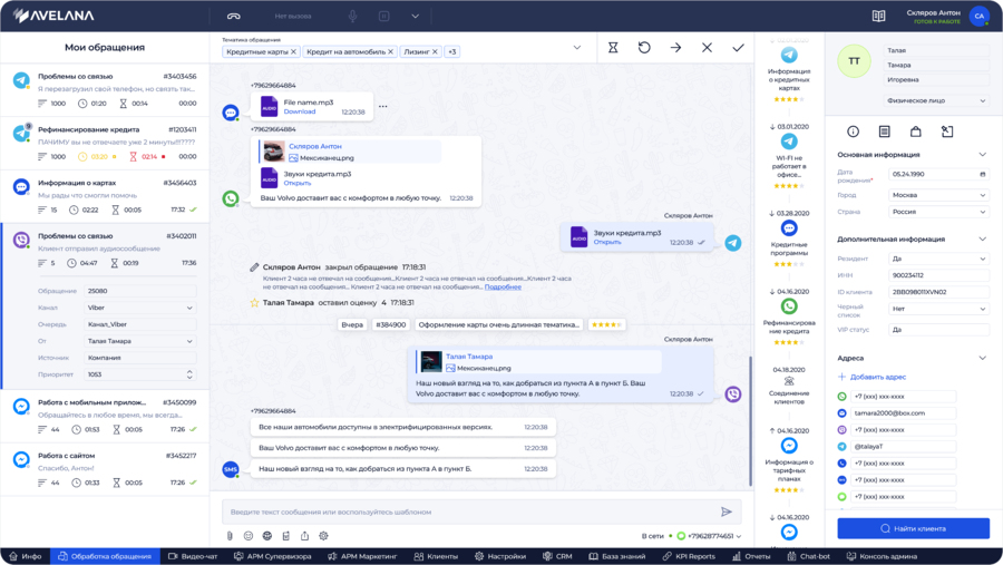 Платформу для создания контакт-центров ФЛАТ интегрировали с омниканальной системой коммуникаций с клиентами Avelana. Представленный программный комплекс обеспечит корпоративным пользователям расширенные возможности работы с голосовыми каналами и текстовыми обращениями в рамках единого цифрового пространства с централизованным управлением. Интеграция «Флат» SoftSwitch и Avelana расширяет функциональность платформы и позволяет пользователям получать и обрабатывать голосовые вызовы, поступающие через телефонию «Флат», автоматизировать маршрутизацию и приоритизацию вызовов по единым правилам с текстовыми каналами. Решение обеспечивает высокий уровень отказоустойчивости и масштабируемости, поддерживает настройку сценариев обработки вызовов, интеграцию с внешними системами и прозрачность процессов для операторов и руководителей контактных центров.