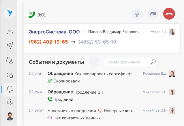 Сервис облачной телефонии, предоставляющий одно окно для всех звонков. Saby хранит информацию о клиентах: название организации, реквизиты, телефоны, адреса и события и показывает ее в карточке звонка. Встроенная база знаний и инструкций. API для интеграции и выгрузки